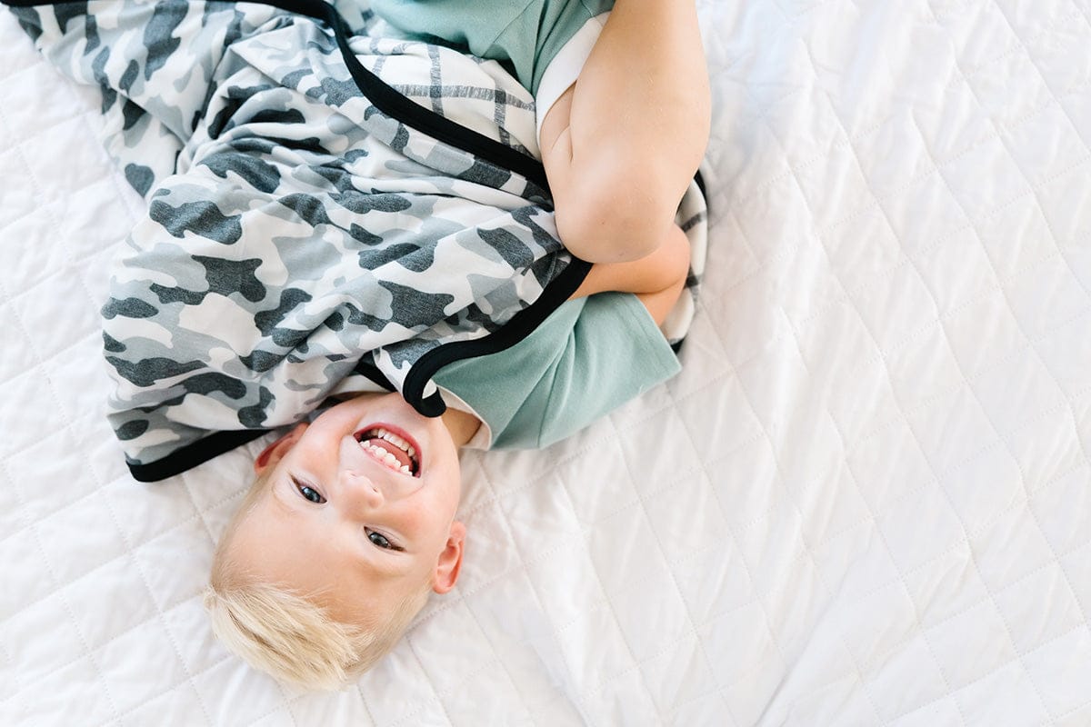 Copper Pearl three-layer quilts are designed with baby’s comfort in mind. That’s why they're created with ultra-soft, breathable fabric with just the right hint of stretch. You can feel confident that baby will feel cozy and comfortable snuggled in this special blanket. These quilts are made from the same ultra soft and stretchy material as our original knit swaddle blankets.