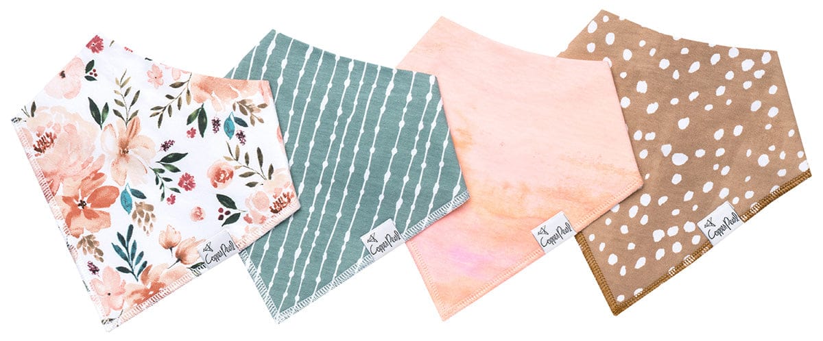 Copper Pearl's 4-pack of baby bibs makes the best gift for new parents, new grandparents, baby showers, Christmas present or for any excuse to make a baby look amazing.