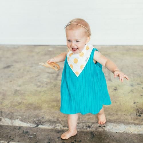 - Each baby bandana bib comes with 2 nickel-free snaps that allow each bib to be adjustable in size to fit newborns and toddlers, with ages ranging from 3-36 months. The snaps are secure, making it difficult for infants and toddlers to unfasten but are easy for parents to snap on and off.