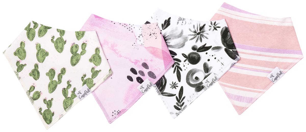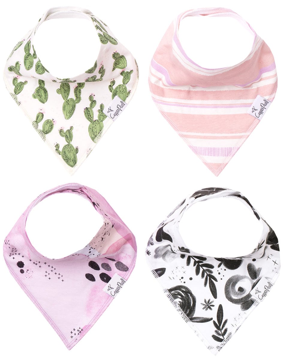 Copper Pearl's 4-pack of baby bibs makes the best gift for new parents, new grandparents, baby showers, Christmas present or for any excuse to make a baby look amazing.