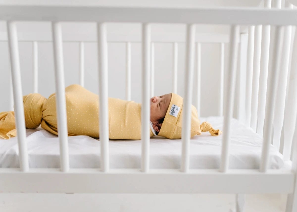 An adjustable knot ensures the perfect fit from newborn to four months.