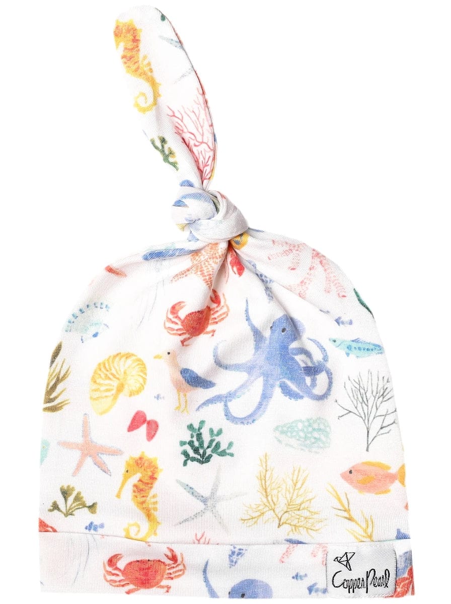 Copper Pearl Newborn Top Knot Hat - Nautical