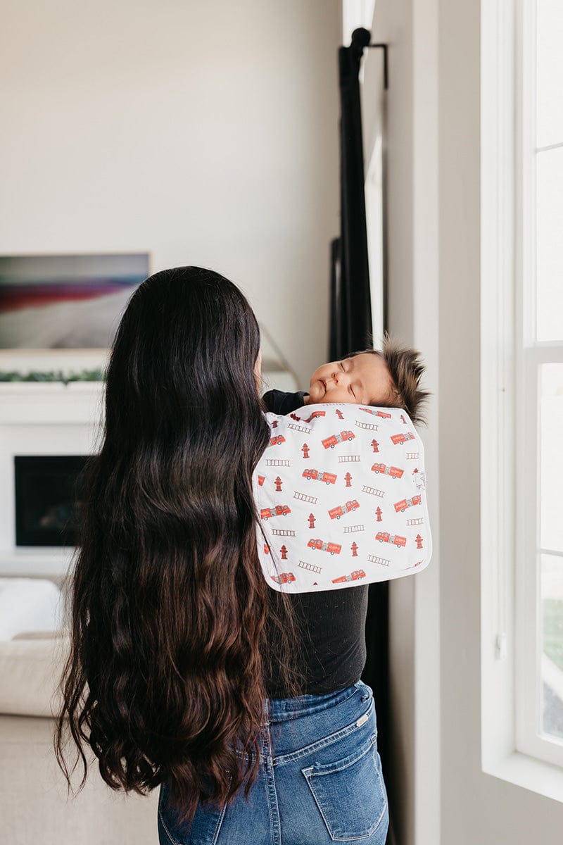 Our burp cloths come in a generous 21x10 inch size, providing greater shoulder coverage (and less outfit changes) for Mom and Dad.