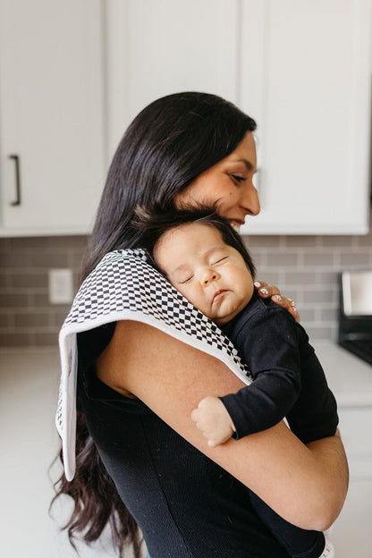These burp cloths are designed with baby’s comfort in mind. That’s why they're made with 100% ultra-soft cotton layers on the front (patterned) and back (plain white). You can feel confident that baby will feel cozy against your shoulder while burping.