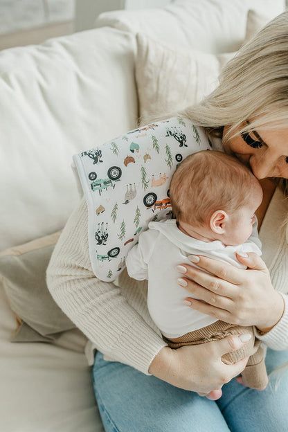 Baby burp time is suddenly on point thanks to the trendy, beloved fabrics that made you fall in love with Copper Pearl! Who would have thought baby could spit up in style? Designed to pair perfectly with Copper Pearl's bandana bib sets, the front of each fashion-forward burp cloth comes in modern, chic patterns on 100% cotton.