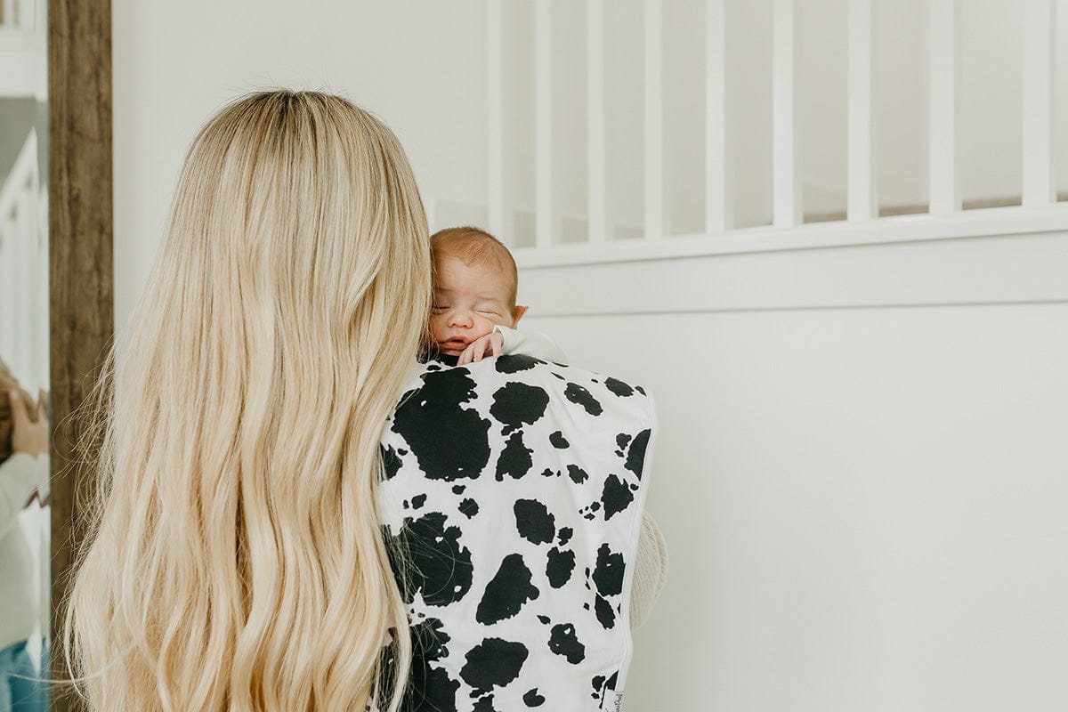These burp cloths are designed with baby’s comfort in mind. That’s why they're made with 100% ultra-soft cotton layers on the front (patterned) and back (plain white). You can feel confident that baby will feel cozy against your shoulder while burping.