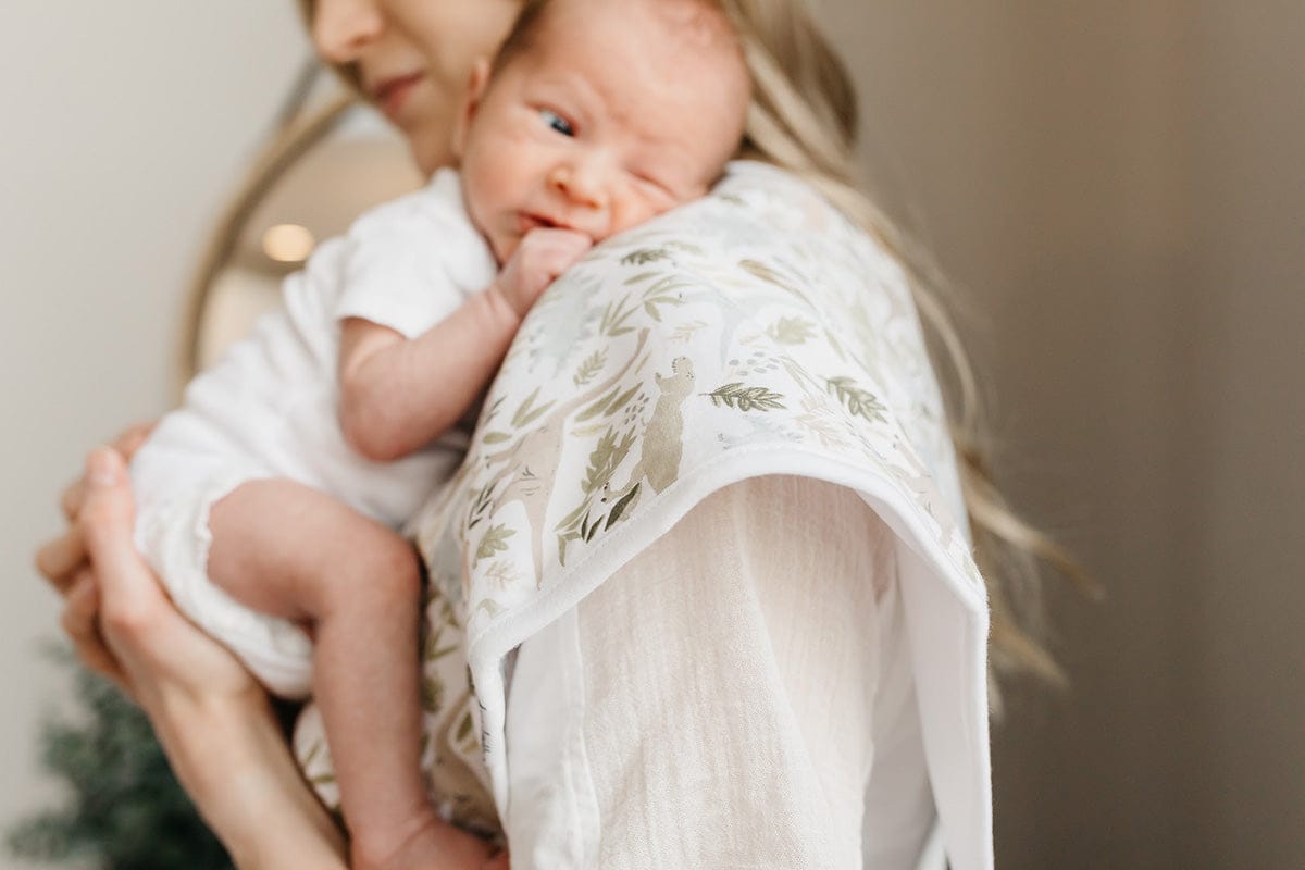 Our burp cloths come in a generous 21x10 inch size, providing greater shoulder coverage (and less outfit changes) for Mom and Dad.