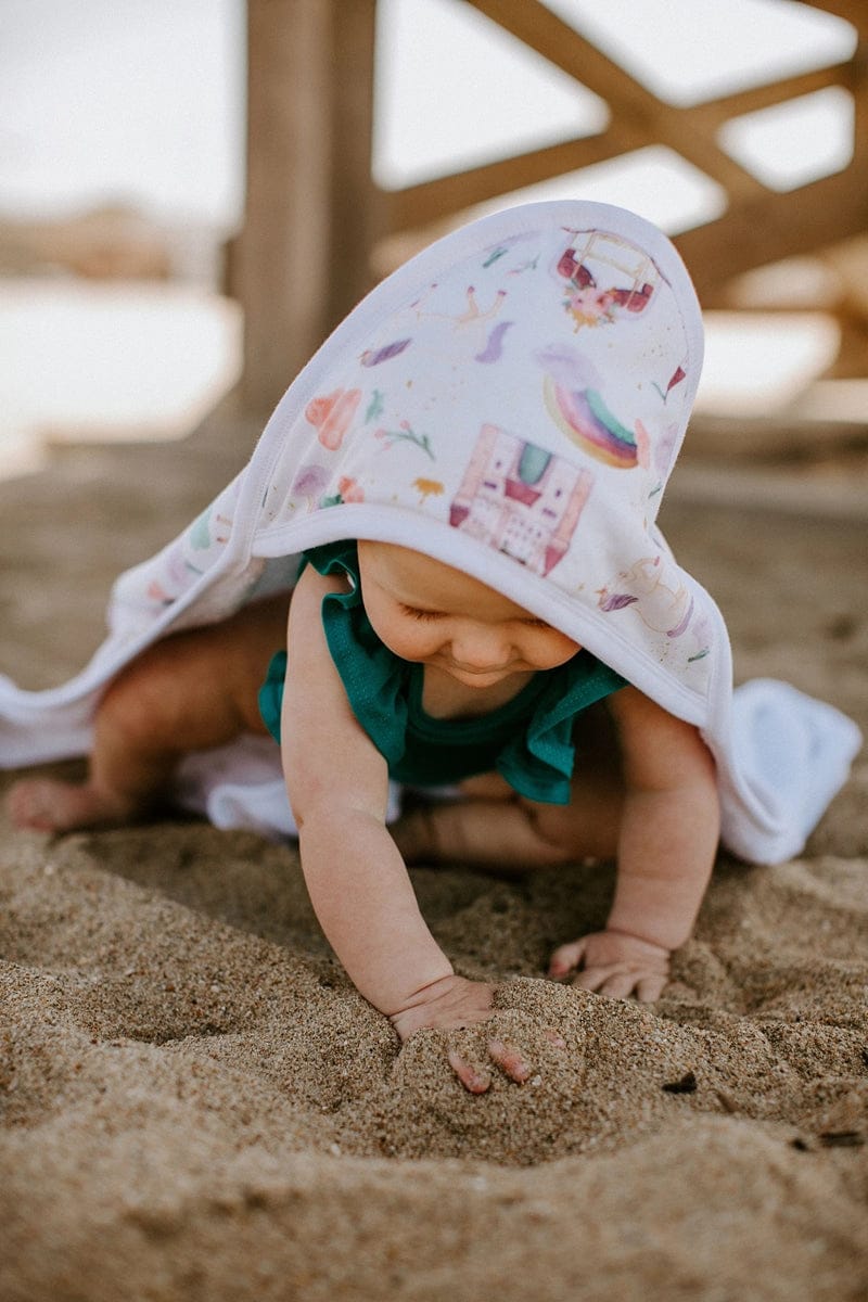 Generous Size - Our hooded towels are 33x33 inches---perfect for baby's first bath all the way through the toddler years.