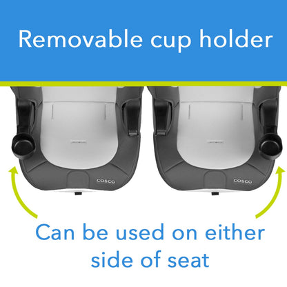 - Dishwasher-safe cup holder detaches for use on either side of seat