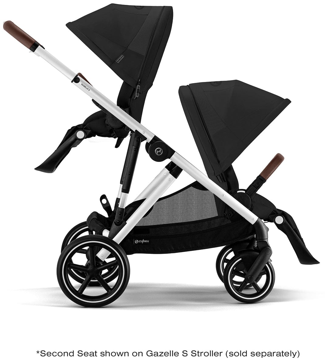 As your family grows, convert the Gazelle S from a single to a double stroller with a second full size seat to allow two children to ride at the same time. Each Gazelle S seat can be used in parent-facing or forward-facing mode and can be attached on either the stroller’s upper or lower positions.