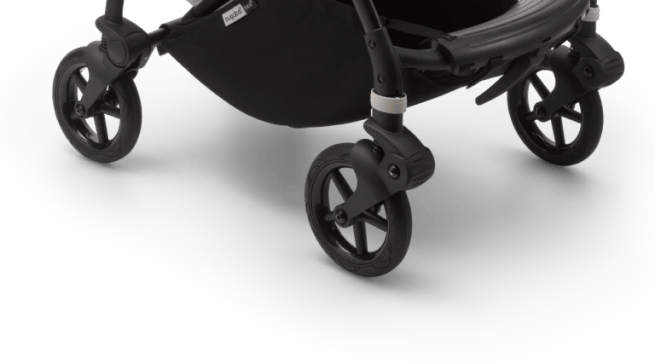 - The independent 4-wheel suspension in this stroller comes with a high-quality damping mechanism, offering extra shock absorption for bump-free rides. Bugaboo Bee6 offers top comfort, whether your child is taking a nap on the go or sitting and exploring the world. With larger 7-inch puncture-proof wheels, it offers extra stability on the road, climbing up curbs, or fun adventures off the beaten path.