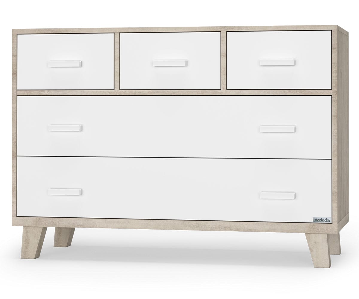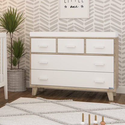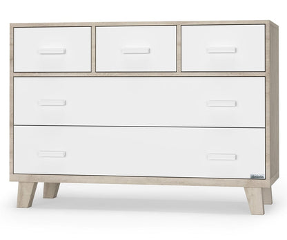 The 48” Boston 5-drawer Dresser is a refreshing approach to a classic design to celebrate your unique style. Safe and sturdy, you’ll love how this high-quality, hard-working piece of furniture complements your baby’s room—or any interior—with subtle contrast colors and ample storage. Forged steel support provides extra stability. Sturdy angled legs, deep drawers and a high-gloss finish make this beautiful dresser a timeless addition for any home. Pair it with the Boston 3-in-1 Convertible Crib or let its two-toned beauty stand on its own.