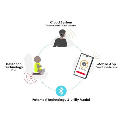 SensAlert is the only child car seat alert solution with three levels of alert to keep your child safe, so they're not left unattended in the car. SensAlert detects the presence of a child on board and triggers the alert system when the caregiver moves away from the car (the smartphone loses Bluetooth connection with the SensAlert device). SensAlert is powered by the Doona™ app, and uses a cloud-based system to call and send messages, so it does not depend on the phone's signal or status. SensAlert is compatible with most car seats and boosters.