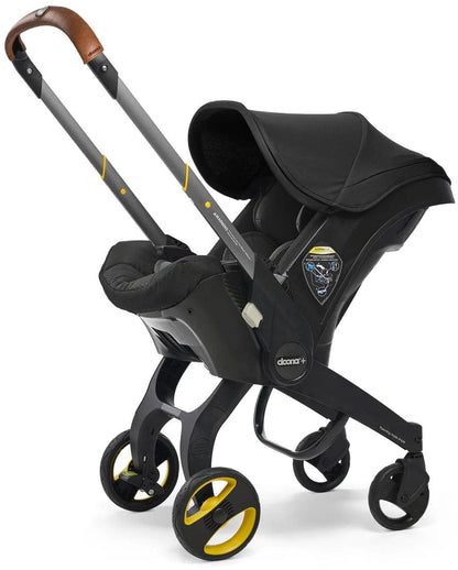 Doona+ Infant Car Seat & Stroller with Handlebar Cover Bundle - Nitro Black / Brown Leather