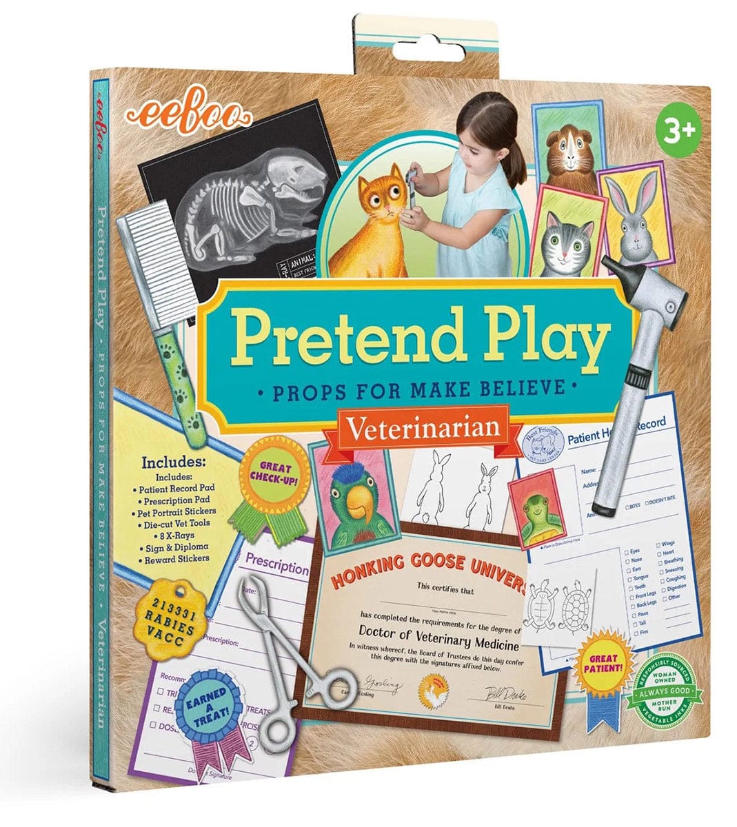The Veterinarian Pretend Play set has everything needed to treat even the most exotic animals. This set includes X-rays, a medical chart, prescription pad, patient records, treats, vet tools and more. Now your little one is set to diagnose every dog's disease and cure every kitten's cough.