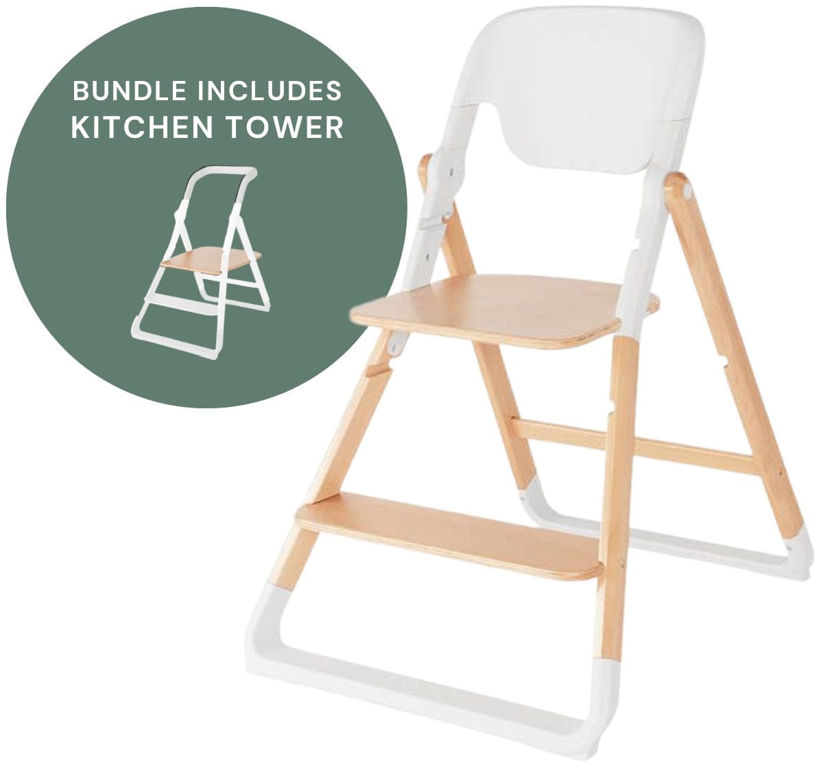 Ergobaby Evolve Chair + Kitchen Tower Bundle - Natural Wood