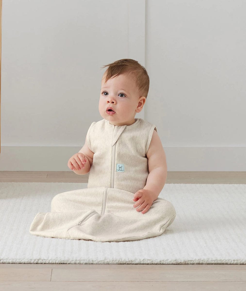 Our Jersey Sleep Sack is a baby and toddler sleep sack designed for arms-out sleepers (usually from around 3 months of age). The Jersey Sack has a slim-fit, stretchy design similar to that of a swaddle and is recommended as baby's 'first sleep sack' after the swaddling phase is over. The safe-sleep approved design is made from soft, stretchy GOTS certified organic cotton and bamboo viscose that is non-toxic and gentle of baby's skin. The ergonomically designed sack features a bell-shaped bottom to promote healthy hip joint development and is approved by the International Hip Dysplasia Institute, and the material is stretchy to allow baby to move more freely and stay comfortable while they sleep.