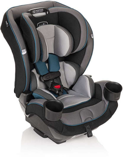The Evenflo EveryKid 3-in-1 Convertible Car Seat has been engineered for maximum comfort, safety, and longevity. The EveryKid 3-in-1 accommodates your child by adjusting to multiple positions, allowing kids to ride rear-facing beyond two years of age — without extending the seat or cramping other passengers. This all-in-one car seat provides a safe and secure ride for up to a decade. Parents and grandparents love the Quick Connector LATCH and belt guides for an easy and tight installation. It can be used as a rear-facing car seat with harness, forward-facing car seat with harness and belt-positioning high-back booster that helps keep children 4 - 120 lb secure while riding in a vehicle.