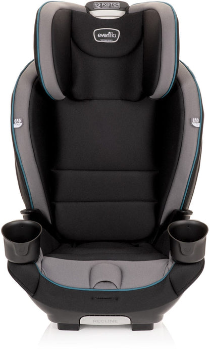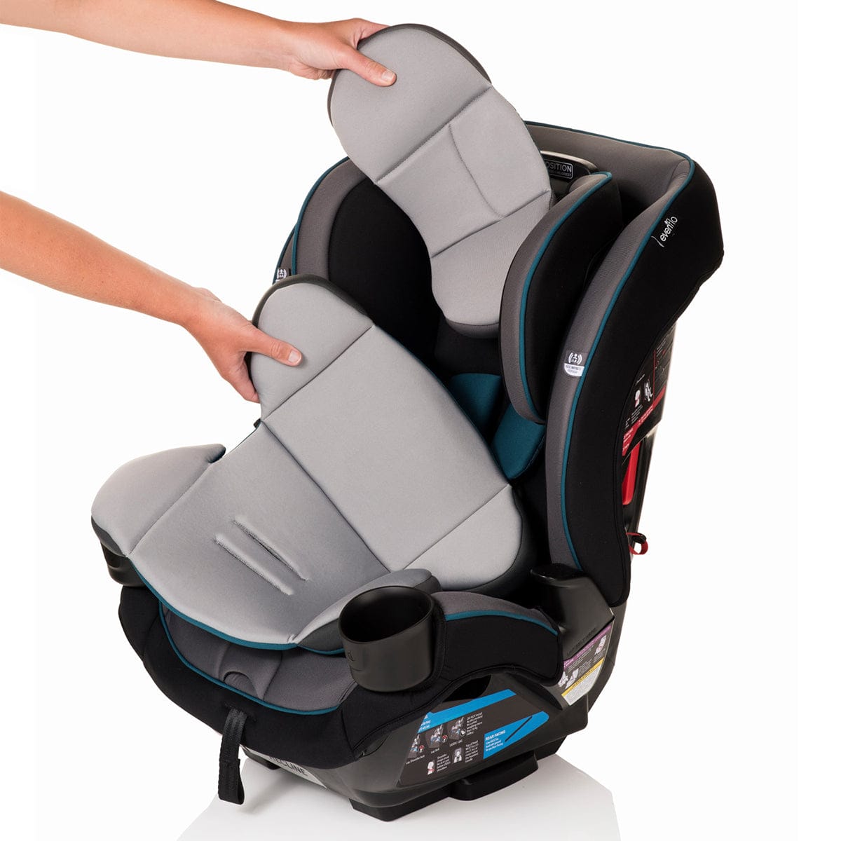Evenflo works with parents to develop child-restraint products that are designed for how they are actually used. We’ve developed this 3-in-1 car seat with comfort, safety and ease-of-use in mind. The one-hand, 12-position headrest and no-rethread harness enable a proper fit during each ride and as child grows — without uninstalling the car seat. For additional convenience, this all-in-one car seat is designed with removable cushions, machine-washable fabrics, and two integrated cup holders.