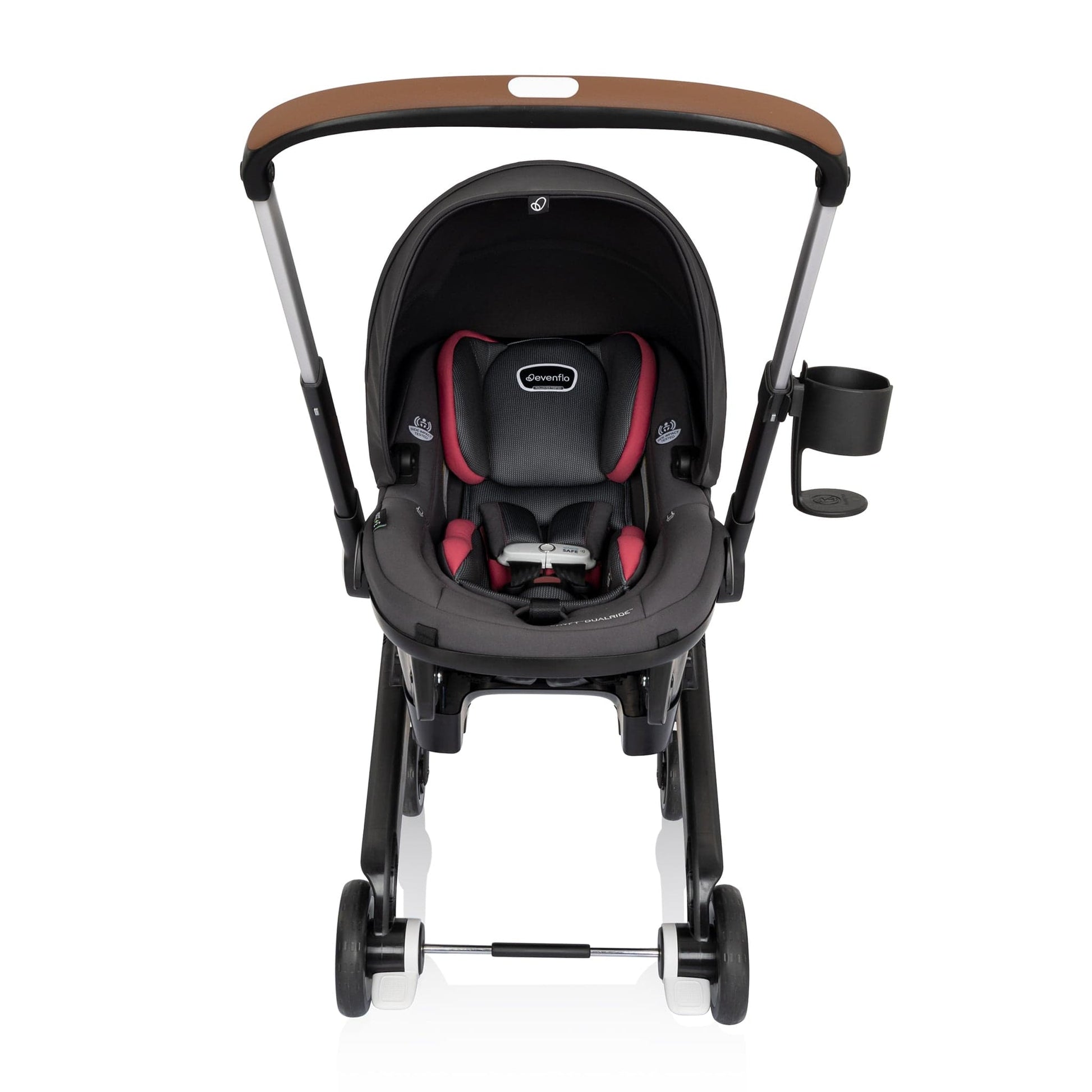 At Evenflo, we go above and beyond government standards to create car seats that are safe. The Shyft™ DualRide™ Infant Car Seat Stroller Combo meets or exceeds all applicable federal safety standards. In addition to federally required testing, it is structural integrity tested, rollover tested and temperature tested.