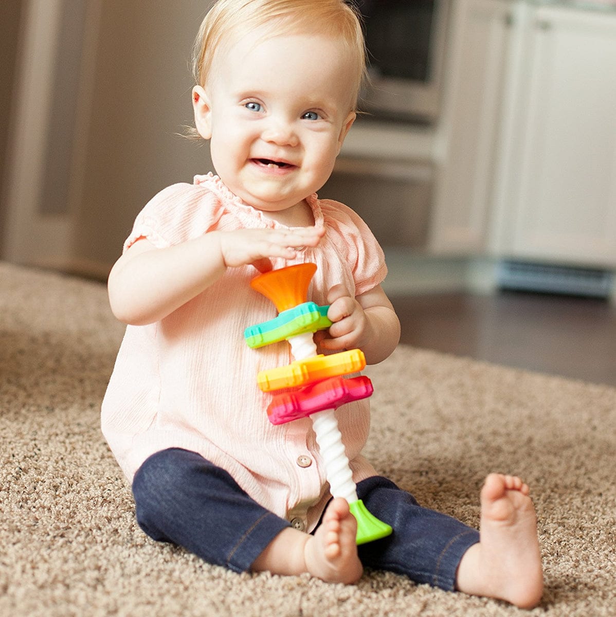 From reaching and grasping to exploring and even counting, the MiniSpinny is a go-anywhere sensory adventure that both stimulates and strengthens young growing brains.