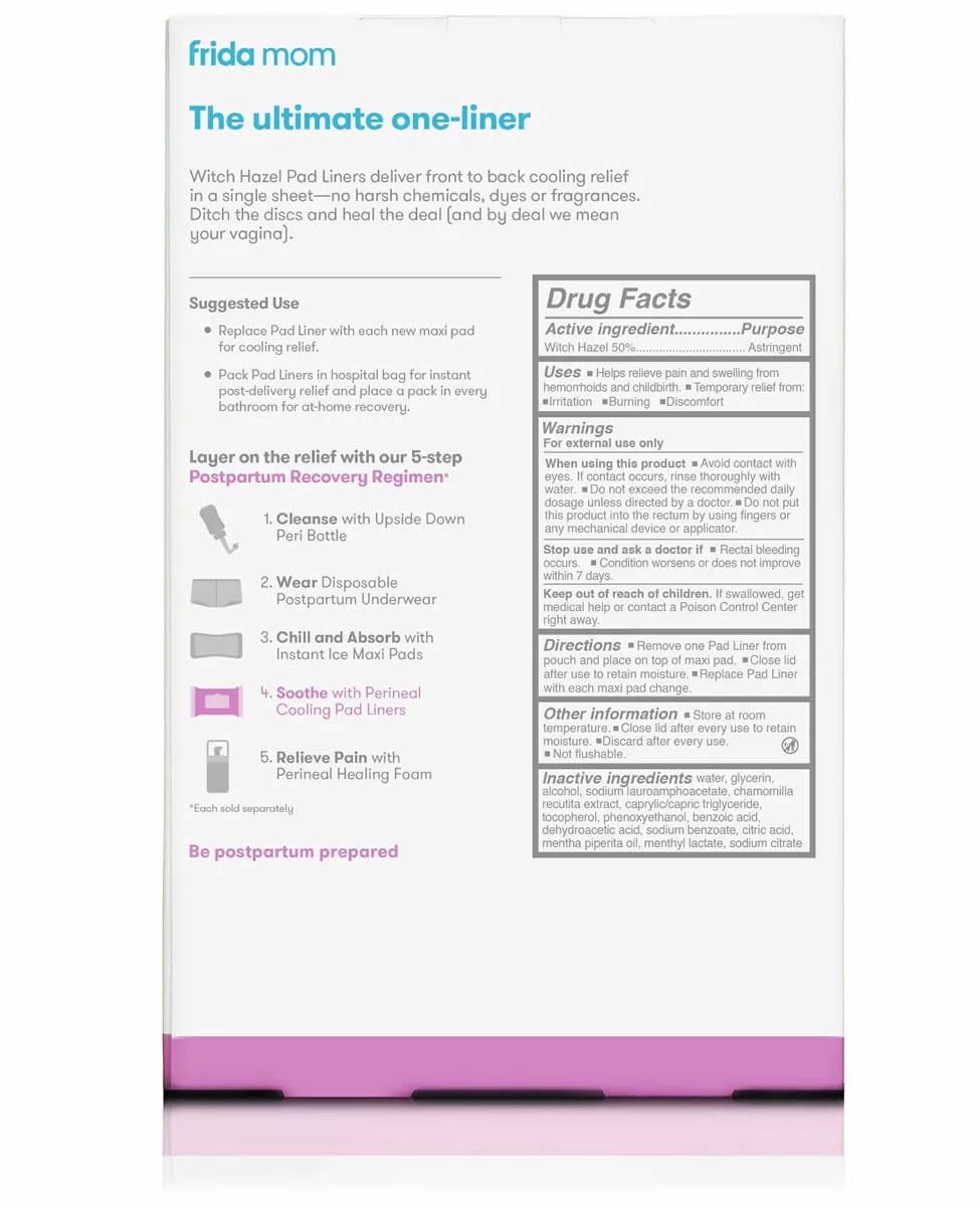 • Soothe: perineal cooling pad liners are step 4 in the frida mom 5-step postpartum recovery regimen.
