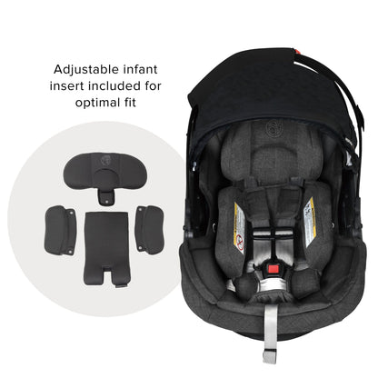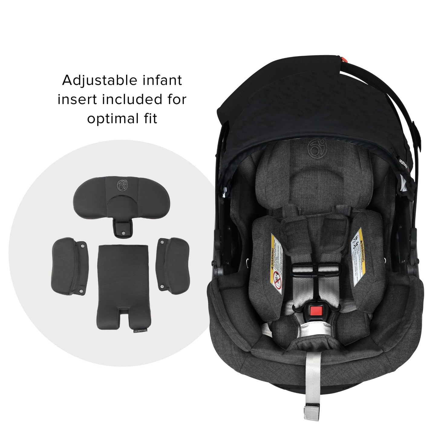 - For infants 4-30 lbs. and 17-32” (included infant insert for use with smaller babies).