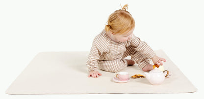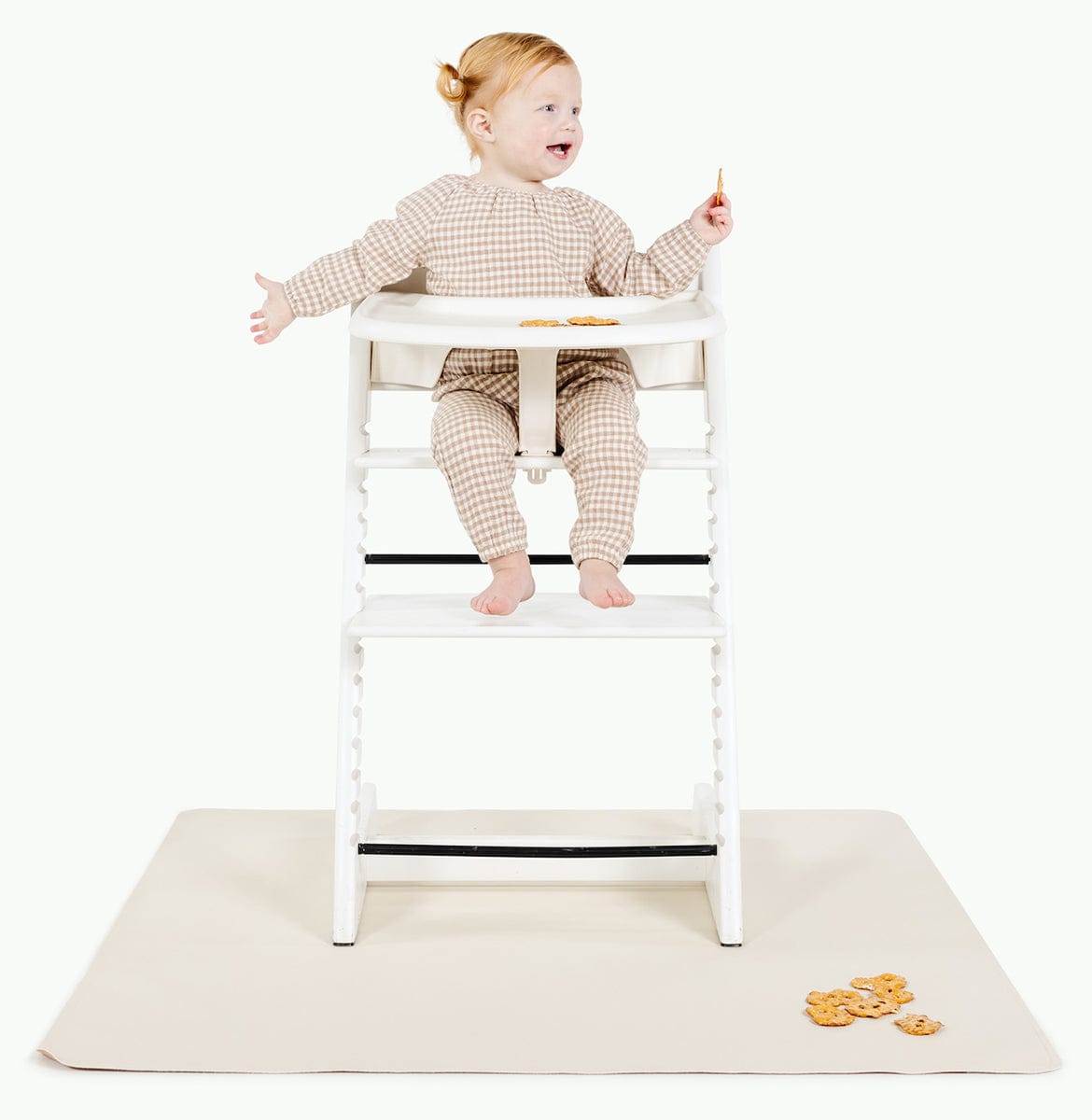 Use as a portable tummy time surface or under the high chair for easier mealtime cleanup. Can double as wall art.