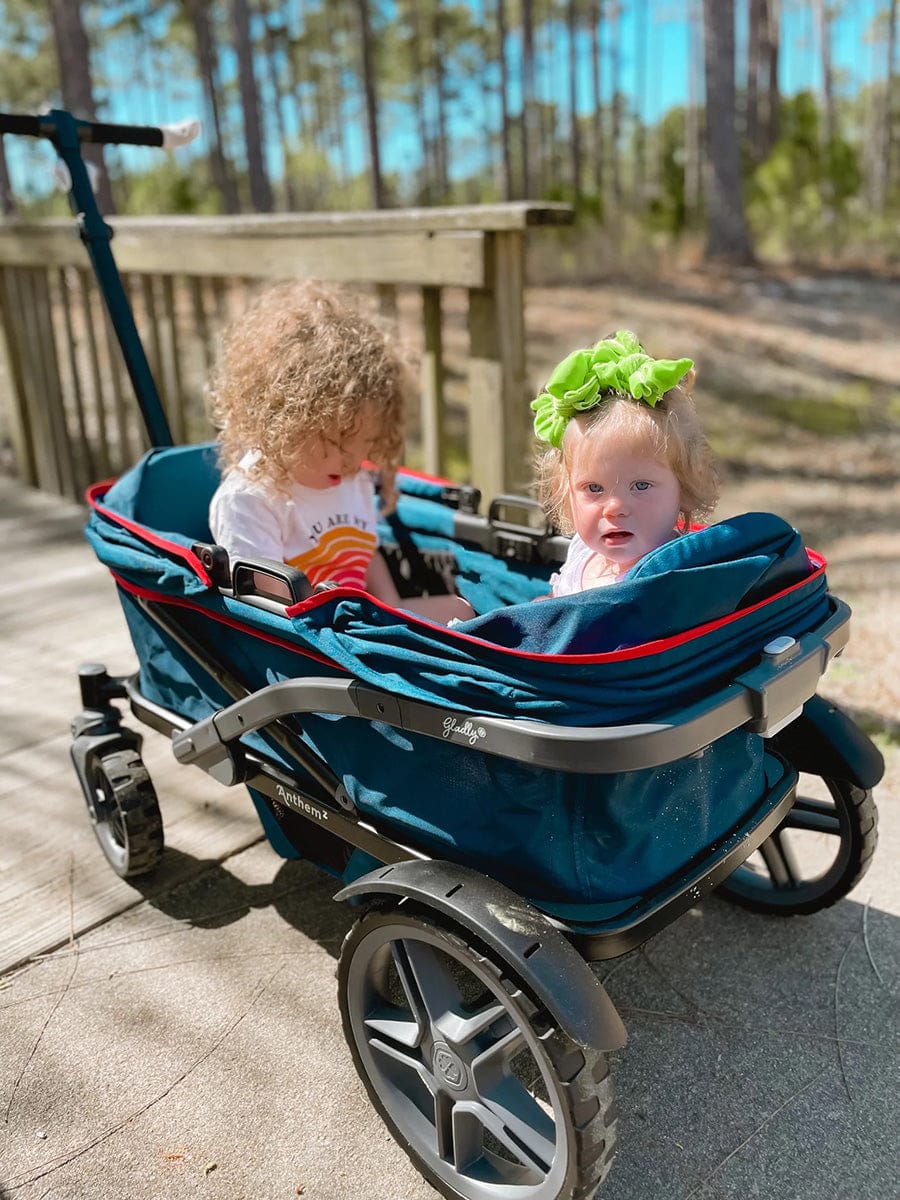 The essentials you need, and nothing you don't. It's the new AnthemZ™ All-Terrain Stroller Wagon. This stroller wagon is a practical option for getting around with your little ones. It's equipped with rugged wheels and a sturdy frame for tackling all types of terrain and comes with two XL canopies. The AnthemZ also folds flat for easy storage. Add on only the accessories that make sense for your family - sold separately.