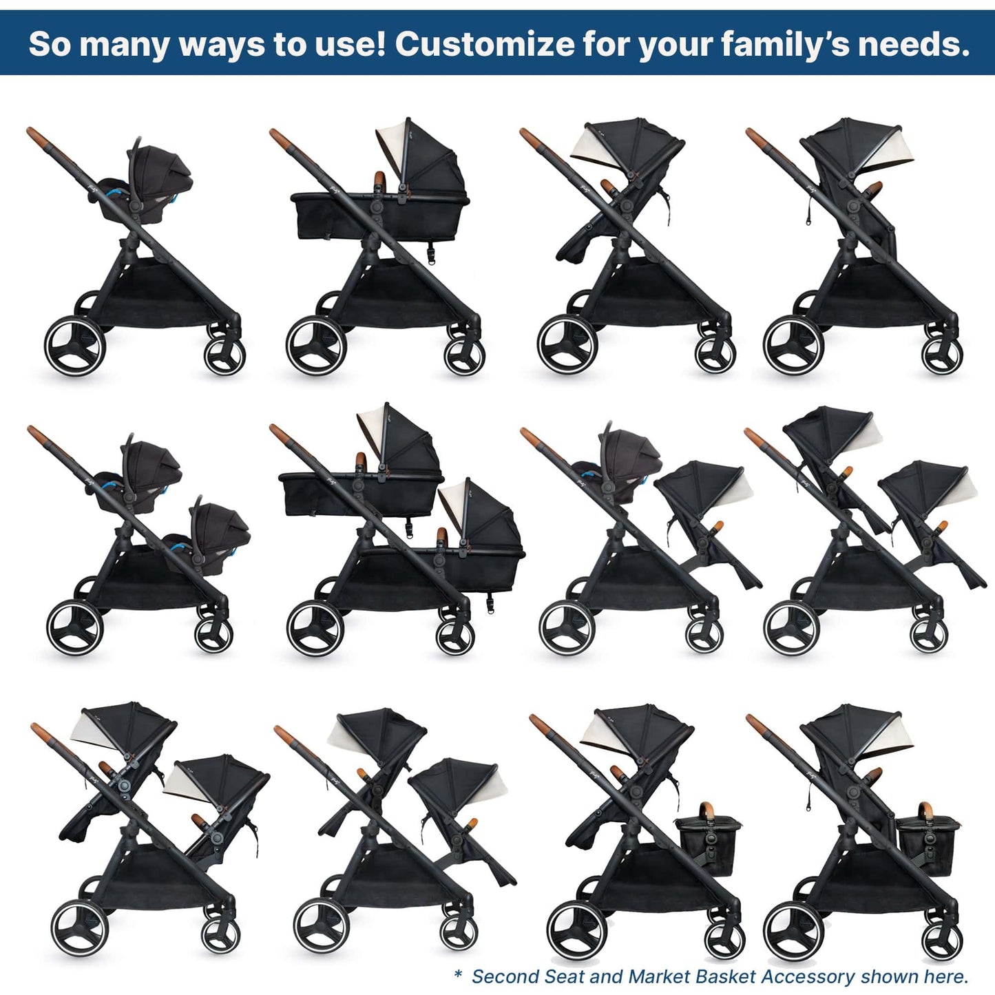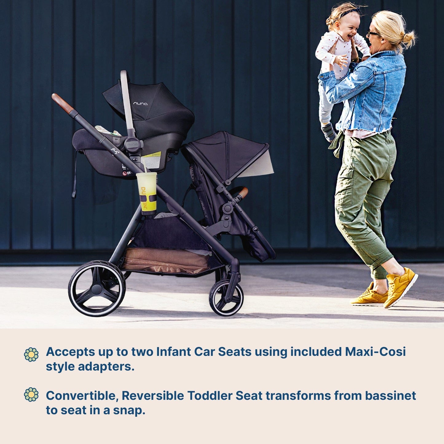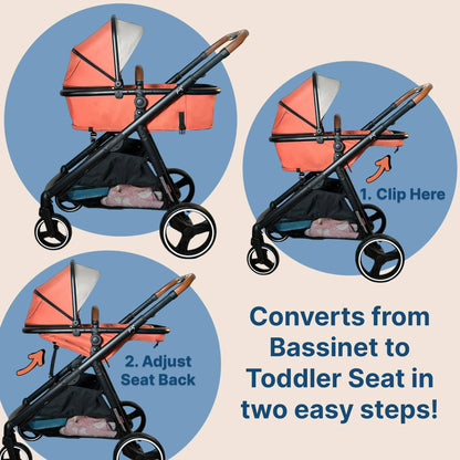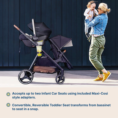 - Seamlessly switch between infant car seat, bassinet, and toddler seat options.