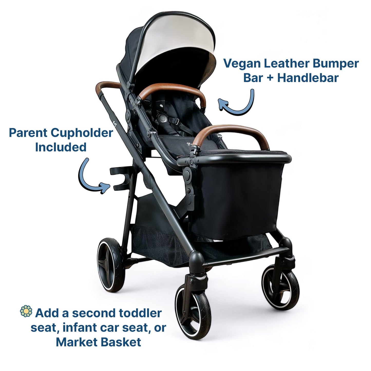 Gladly Family Piper Stroller Second Seat: 2-in-1 Toddler Seat + Bassinet - Onyx
