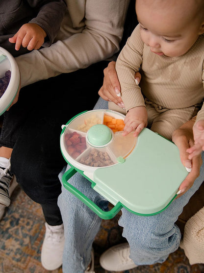 The ALL NEW GoBe Lunchbox is designed for maximum snack-tastic fun! The unique design, complete with carrying handle, bento compartment, and Snack Spinner combo, keeps things all together in one convenient package.