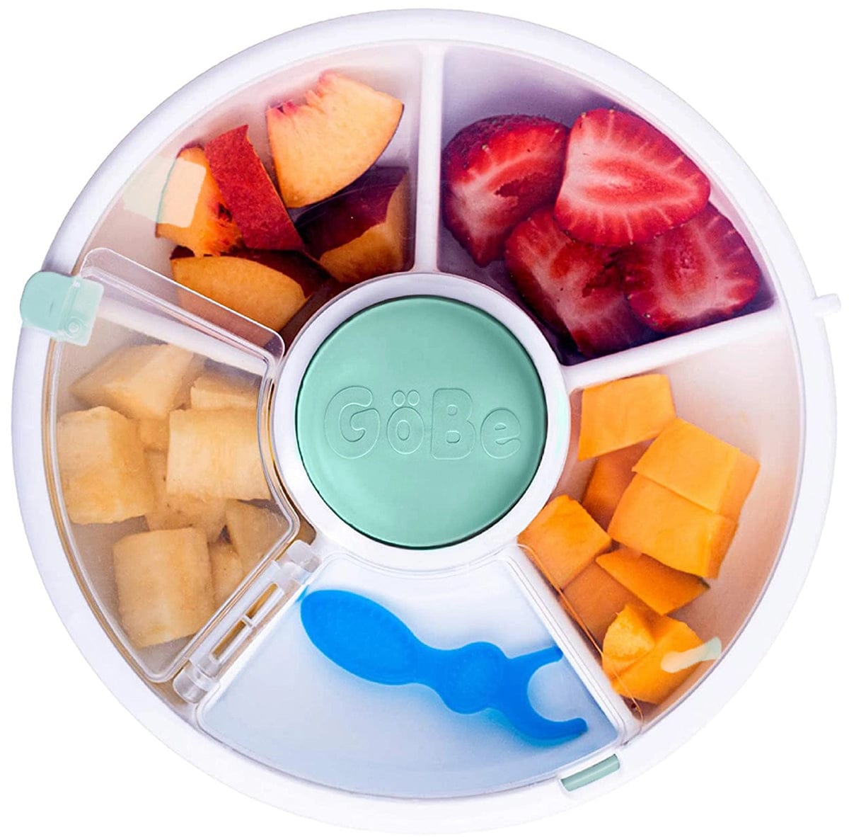 The GoBe Snack Spinner is the only spill proof snack container that allows your child to choose between five different snacks at once! With the push of a button, your child can jump from snack-to-snack, all while reducing spills and mess! More snacking variety for them, less mess for you.
