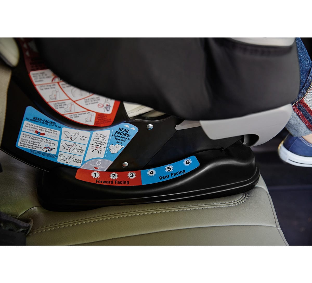 Extend2Fit? features a 3-position extension panel that provides 5? of extra legroom allowing your child to ride safely rear-facing longer. The seat can be used rear-facing from 4-50 lbs. and forward-facing from 22-65 lbs. The seat features Simply Safe? Adjust which allows you to adjust the height of the harness and headrest as your child grows, InRight? LATCH for a one-second LATCH attachment and Fuss Free harness storage which holds the buckle out of the way, so it?s easy to get baby in and out.