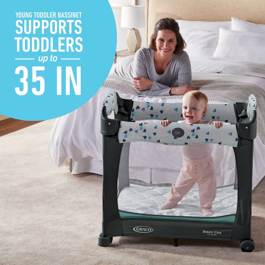 With 3 growing stages, the Graco® Travel Lite® Crib with Stages is specially designed to grow with your baby from newborn to young toddler! Each stage provides a safe, cozy, yet portable spot for baby to sleep by your side. Plus, the Travel Lite® Crib folds compactly and includes a carry bag to make travel easy. With the Graco® Travel Lite® Crib with Stages, you and baby can have sweet dreams longer...and longer!