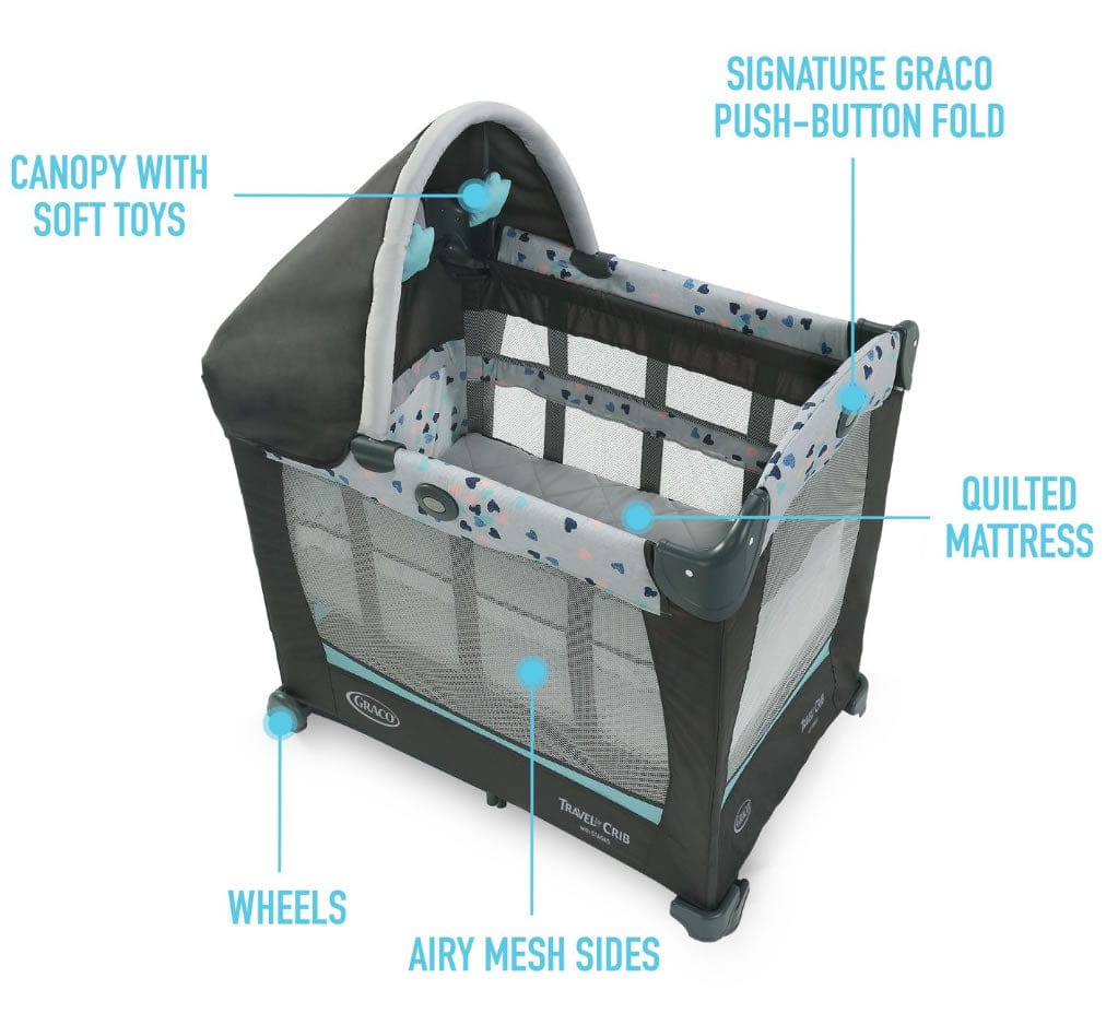 - Infant bassinet provides a convenient, elevated spot for baby, making it easier to see and reach baby when needed