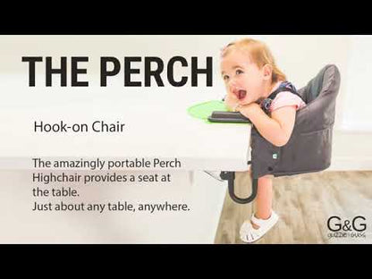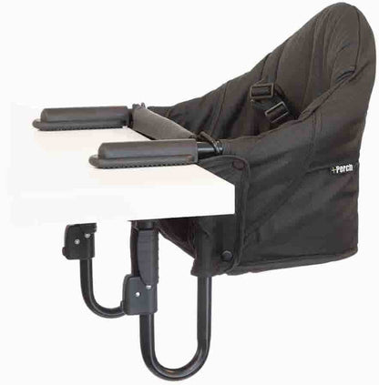 Whether at home, in a restaurant or on a picnic day, the Perch portable hanging high chair will give your child a special place at the family table. The Perch attaches to most tables and folds compact for easy storage. A handy travel bag is included, which you’ll be able to store under the seat when not in use.