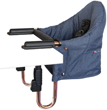 Whether at home, in a restaurant or on a picnic day, the Perch portable hanging high chair will give your child a special place at the family table. The Perch attaches to most tables and folds compact for easy storage. A handy travel bag is included, which you’ll be able to store under the seat when not in use.