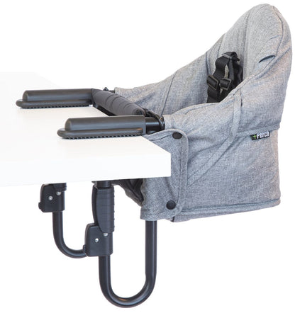 Whether at home, in a restaurant or on a picnic day, the Perch portable hanging high chair will give your child a special place at the family table. The Perch attaches to most tables and folds compact for easy storage. A handy travel bag is included, which you’ll be able to store under the seat when not in use.