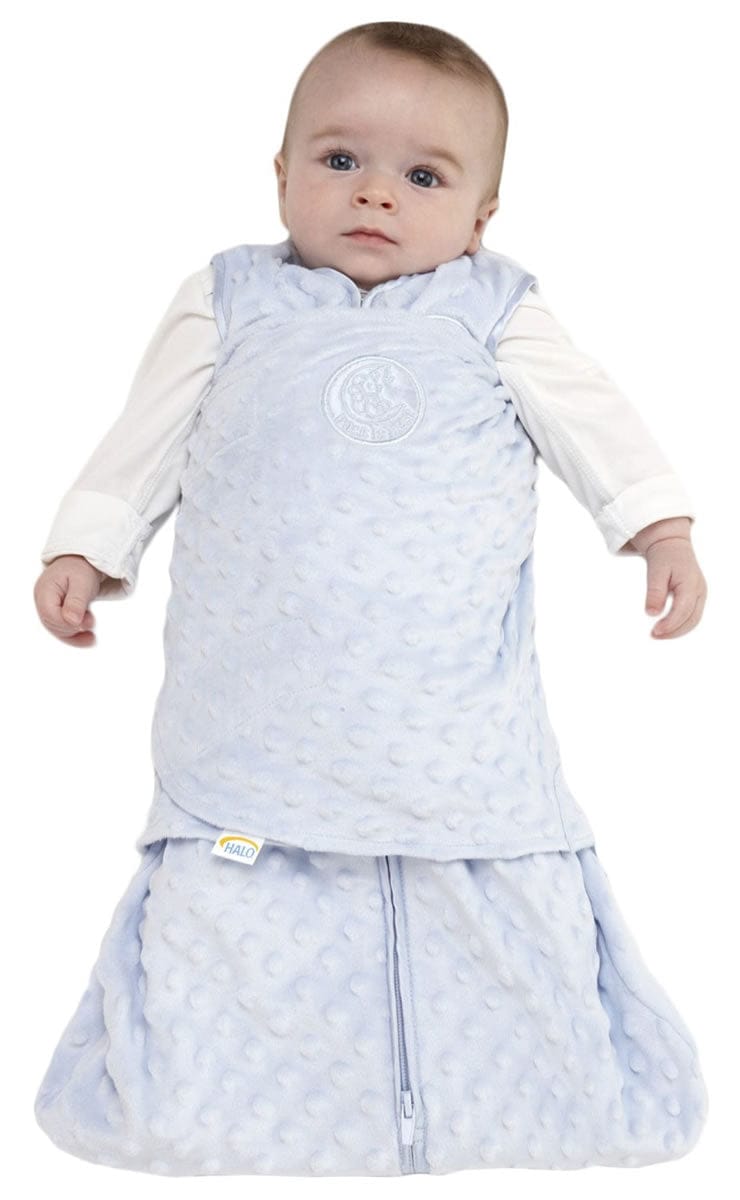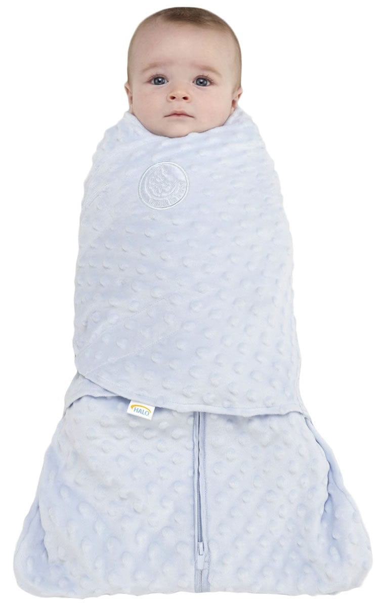 HALO SleepSack Swaddle, Velboa, Blue Plush Dots, Newborn