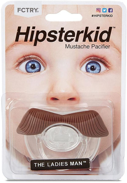 The Ladies Man - A mustache pacifier for the flirtatious rogue. Hipsterkid?Mustache Pacifiers were designed for the new man in your life. 100% Guaranteed. Break It. Drop It. Lose It. We'll Replace It.* Specs: