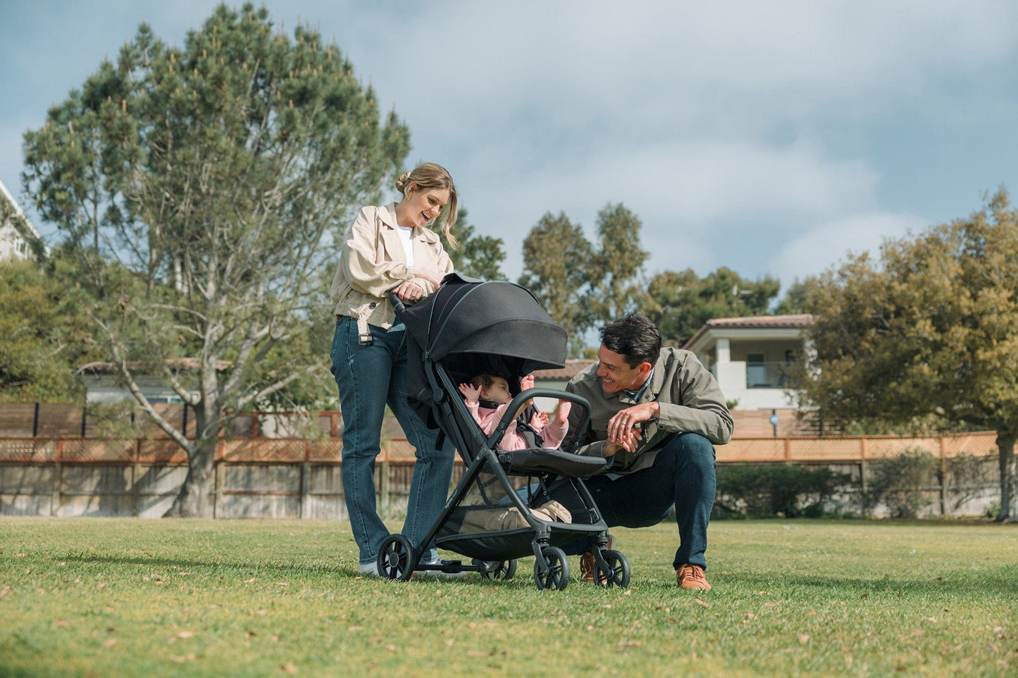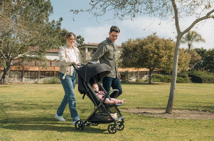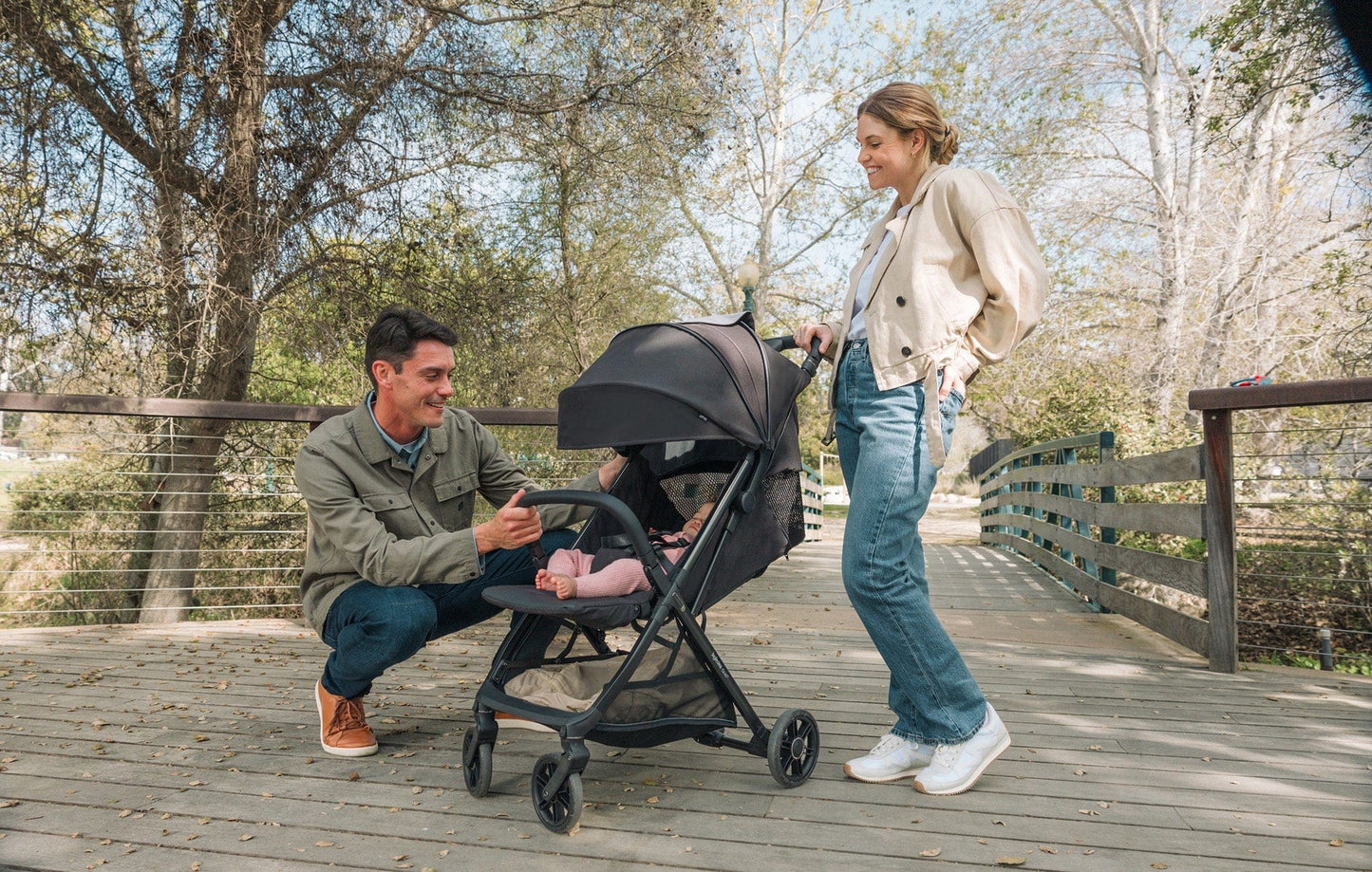 The Quid³ stroller weighs only 14 lbs, perfect to take anywhere and has an effortless 1-hand folding system for your convenience. The ultra-compact design makes traveling a breeze - the Quid³ fits into overhead compartments of most airplanes. The integrated Zero Gravity shoulder strap makes the Quid³ feel even lighter when carrying it around, leaving your hands free for your child. The self-standing feature ensures none of the fabrics ever touch the ground, keeping your baby and stroller clean. High handlebar allows comfortable maneuverability even for particularly tall parents.