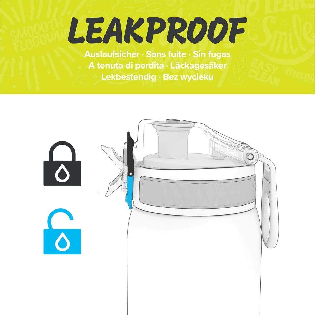 OneTouch lids open hands free with just one finger and lock closed for peace of mind when throwing into a bag. Your drinking spout is clean and hygienic, always safely covered.