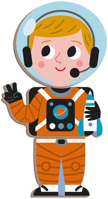 When I grow up, I’m going to be... Open your magneti'book to discover different professions! With this lovely colourful magnetic toy, your child will discover 16 professions, with the possibility of inventing many more! It consists of a magnetic board, 48 magnets and 16 cards representing well-known professions. Young and old alike will have fun reproducing the templates and mixing them up to come up with the most eccentric mix of professions. Magnetic toy made of cardboard for children aged 3 to 8.
