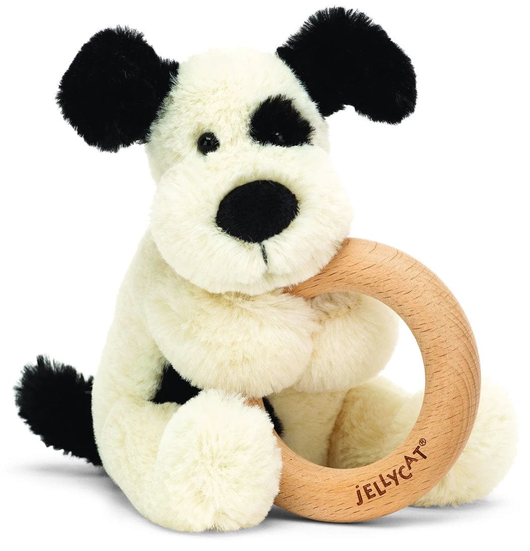 Jellycat Bashful Black & Cream Puppy Wooden Ring Toy