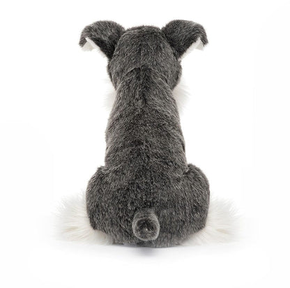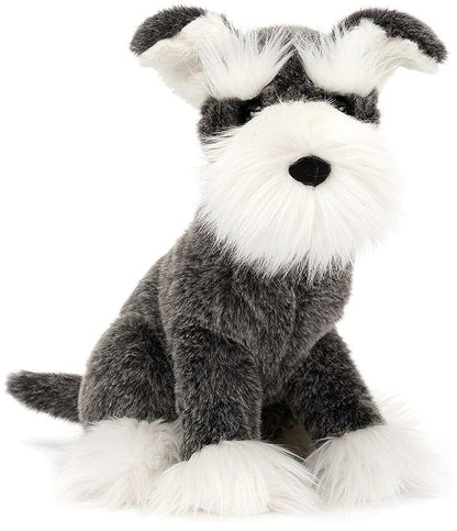 A feisty pup with foldy ears, Lawrence Schnauzer is certainly not shy! With big tufty eyebrows, a soft fuzzy muzzle, silky cream paws and gorgeous grey fur, this elegant, expressive gent is fierce friends with everyone he meets! Full of wags and woofs, this schnauzer's a star.