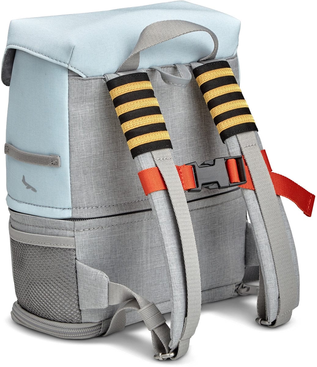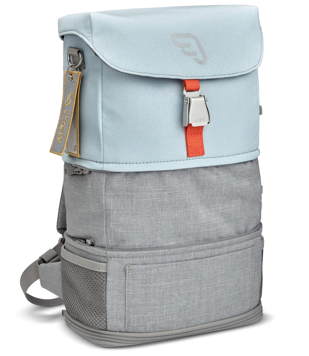 - Aviation inspired details, including mini aluminium seat buckle for opening and closing the lid, a JetKids Crew bag tag, and a set of detachable captain stripes
