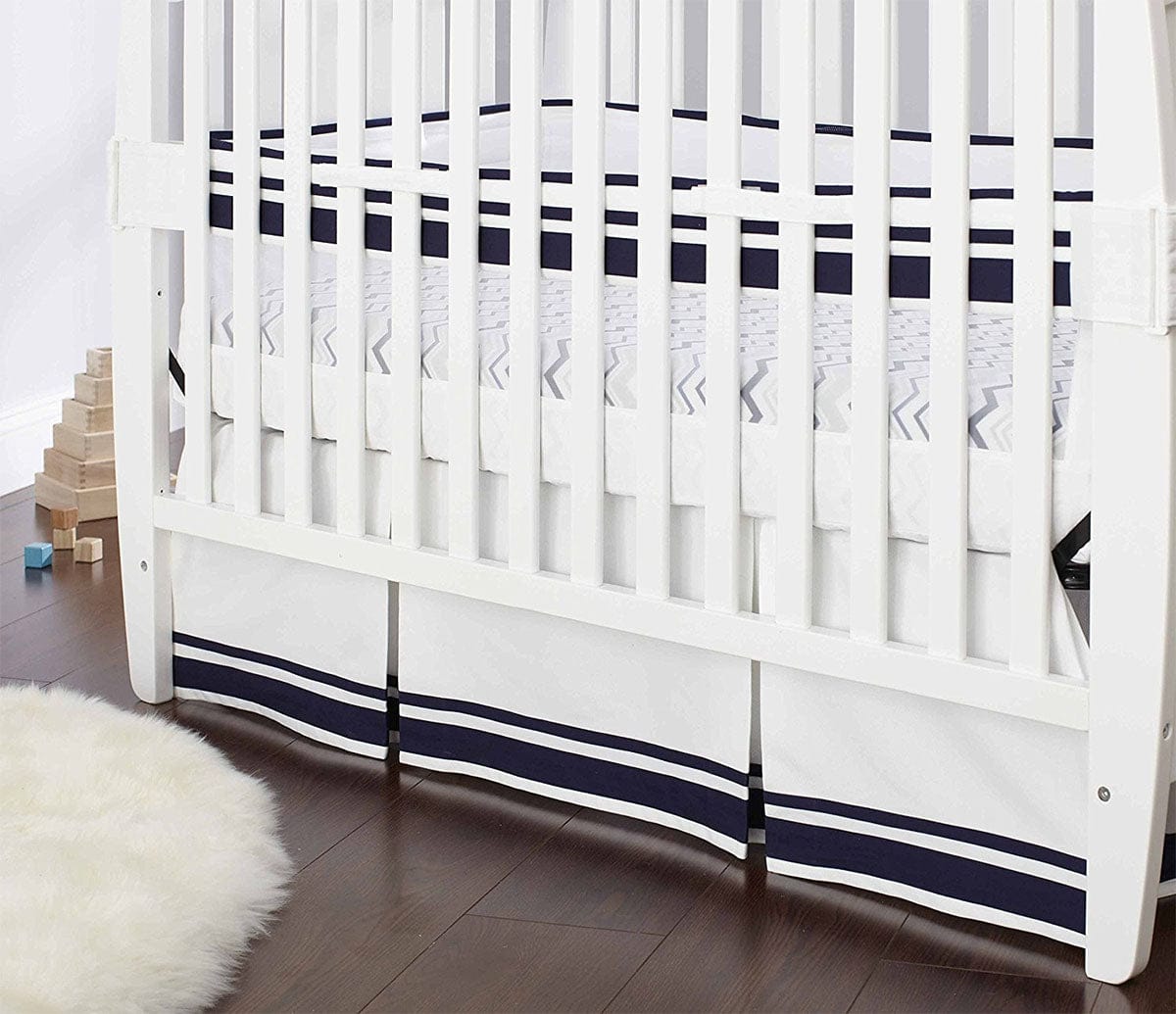 Design the nursery of your dreams with the Just Born? Classic Navy Nursery Bedding Collection. The chic tailored design of this Navy Crib Skirt will give your baby's crib a polished look. It coordinates with any boy style nursery and fits all standard cribs.