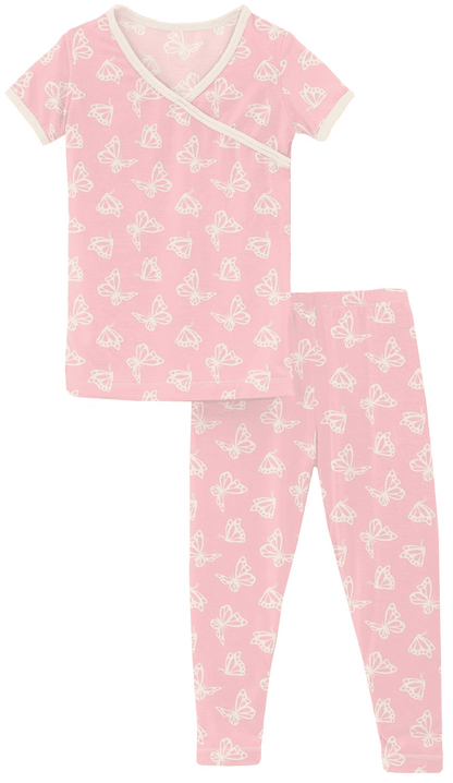 KicKee Pants Short Sleeve Kimono Pajama Set - Lotus Butterfly, 4T
