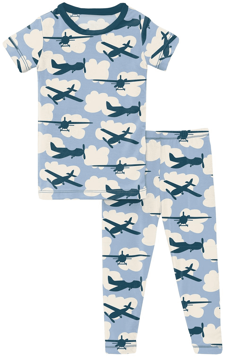KicKee Pants Short Sleeve Pajama Set - Pond Airplanes, 2T